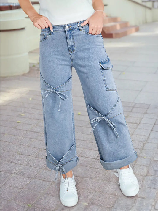 Save 14%Bowknot Decor Boyfriend Cargo Jeans